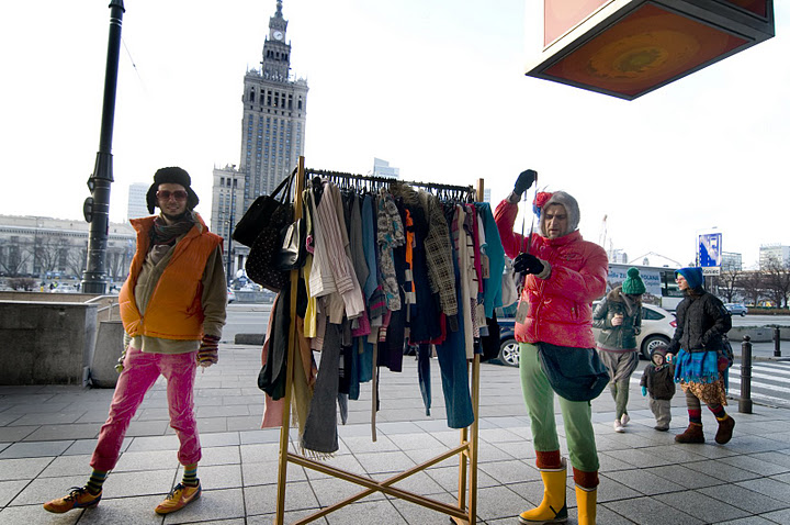 Dlatego dorwałam go w centrum stolicy, gdy rozdawał Warszawiakom swoje ciuchy w ramach blogowego happeningu. To był jego drugi happening. Pierwszy miał miejsce w październiku w Złotych Tarasach. Relacja TU.
