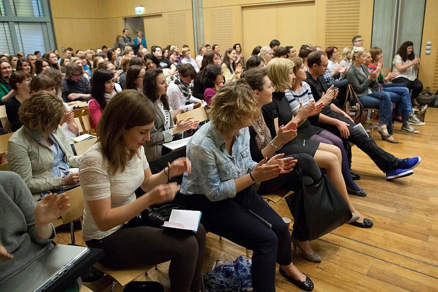 Przyszło sporo osób – cała sala pełna. A w przerwach było nawet wino.