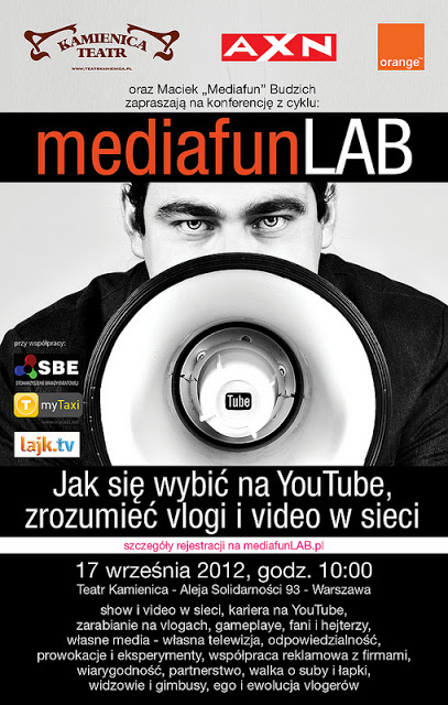Jeśli jednak chcecie o tym posłuchać, zapraszam w poniedziałek 17 września do Warszawy na konferencję „mediafunLab – jak się wybić na Youtube, zrozumieć vlogi i video w sieci”.