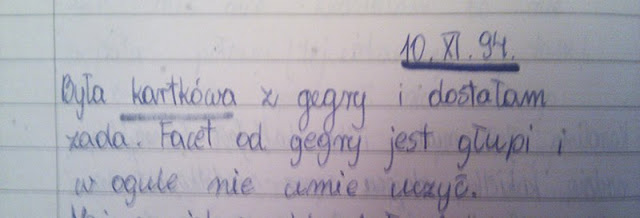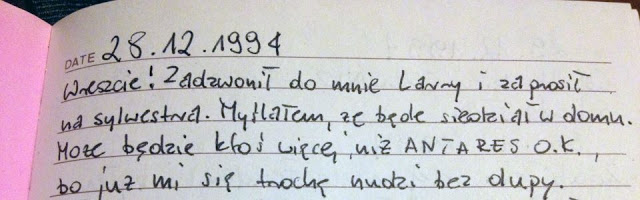 A to mój, też 1994 rok. Pierwsza toporna notka, a w niej wszystko: nauka, sport, nutka dramaturgii, polityka, religia, teatr. W kolejnych wpisach już lepiej, dużo miłosnych intryg, aż się wczoraj do nocy w tym zaczytałam.