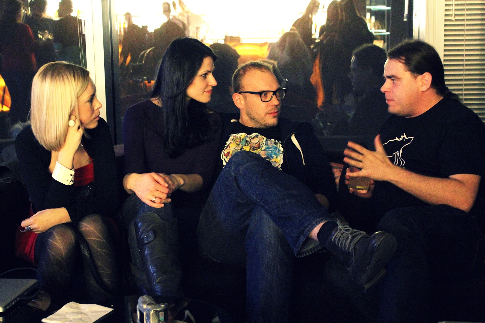 Miała też być krótka pogadanka merytoryczna, ale blogerzy tak intensywnie zajęci byli sobą i drinkami, że przerwanie im tej przyjemności graniczyło z cudem. Jednak na kolejnych spotkaniach chcę wprowadzić trochę dyskusji, czy prezentacji. Ujarzmię blogerów bardziej skutecznie.