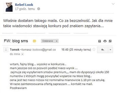 Aha – czy Wam rzeczywiście przeszkadzają blogerzy proszący o smsy? Bo mi nie. Zupełnie nie.